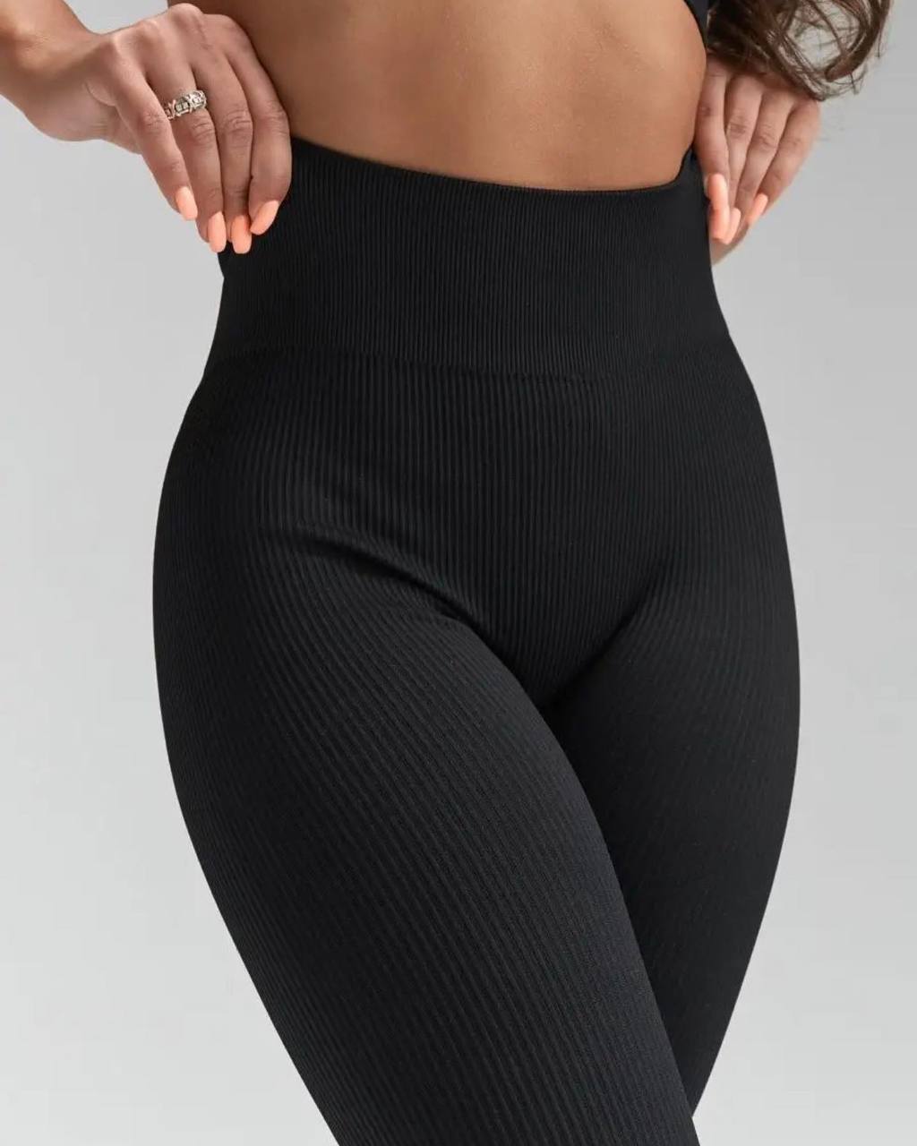 Утеплені безшовні лосини в рубчик — 80% бавовна